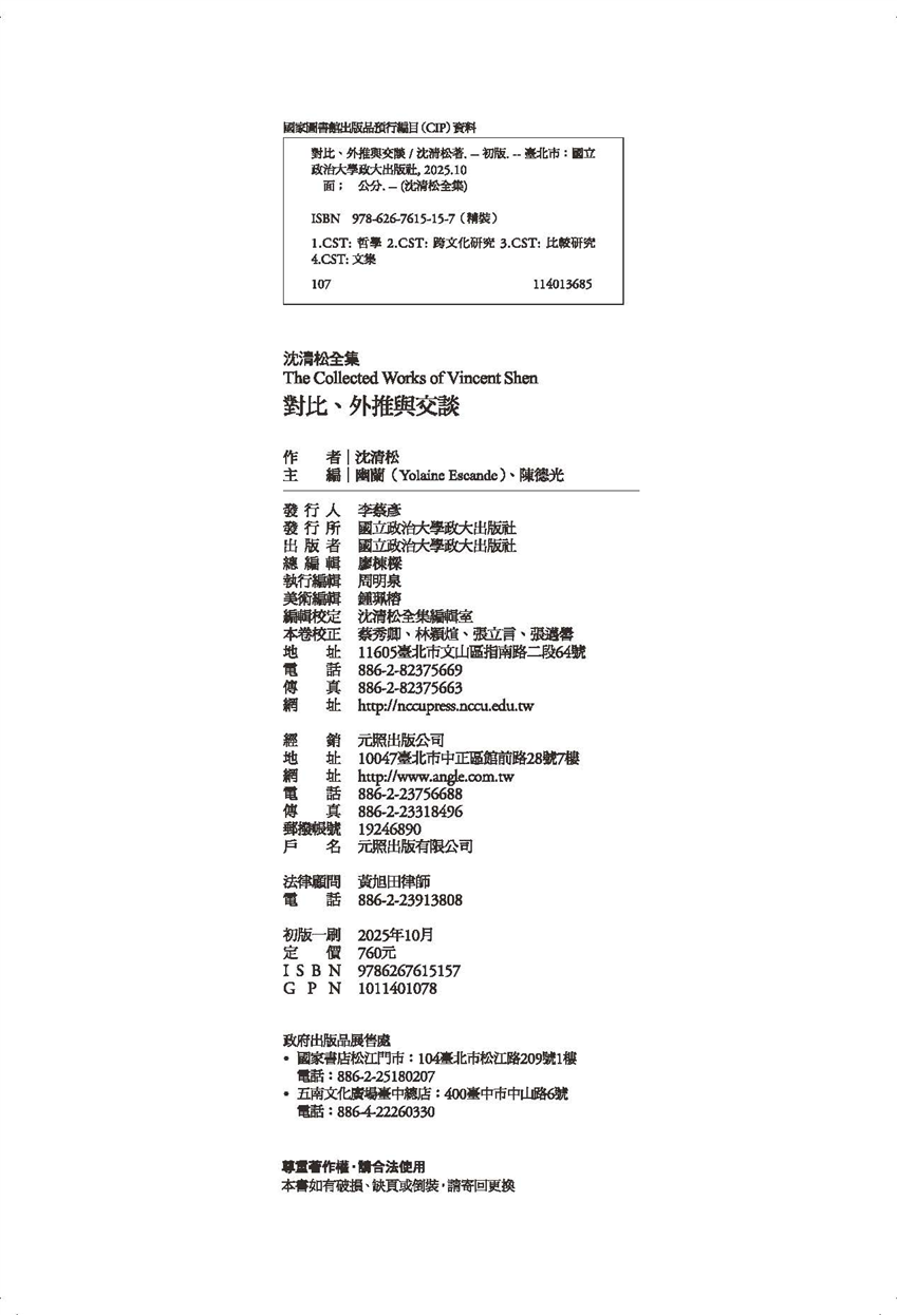 地址:116011台北市文山區指南路二段64號(研創中心2樓350206室) 電話:02-82375669、02-82375671 政大出版社書法題字:唐翼明 教授 © 2008 Chengchi University Press. All rights reserved. |
