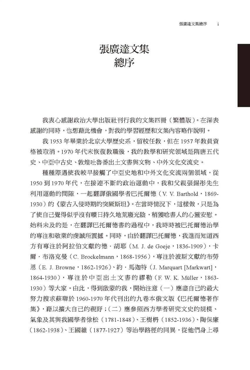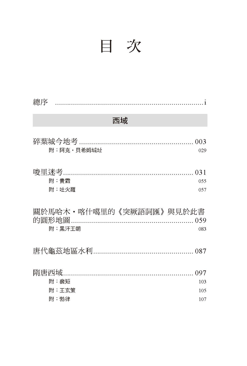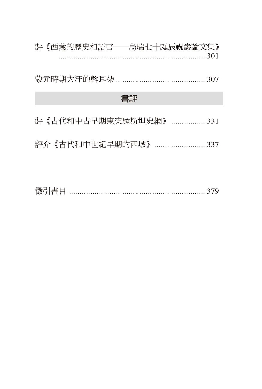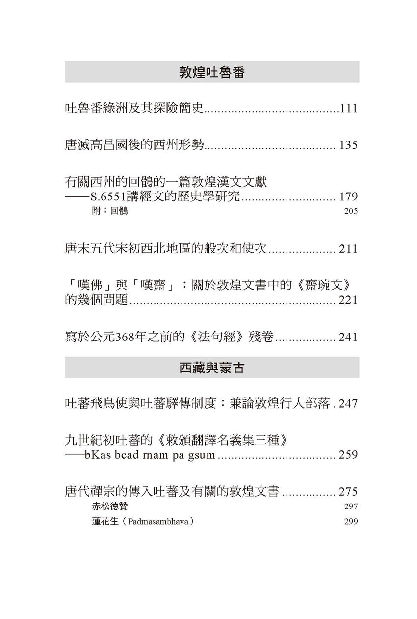 【西域】 碎葉城今地考 附:阿克‧貝希姆城址 唆里迷考 附:貴霜 附:吐火羅 關於馬哈木‧喀什噶里的《突厥語詞匯》與見於此書 的圓形地圖 附:黑汗王朝 唐代龜茲地區水利 隋唐西域 附:裴矩 附:王玄策 附:勃律 【敦煌吐魯番】 吐魯番綠洲及其探險簡史 唐滅高昌國後的西州形勢 有關西州的回鶻的一篇敦煌漢文文獻─S.6551講經文的歷史學研究 附:回鶻 唐末五代宋初西北地區的般次和使次 「嘆佛」與「嘆齋」:關於敦煌文書中的《齋琬文》的幾個問題 寫於公元368年之前的《法句經》殘卷 【西藏與蒙古】 吐蕃飛鳥使與吐蕃驛傳制度─兼論敦煌行人部落 九世紀初吐蕃的《敕頒翻譯名義集三種》─bKas bcad rnam pa gsum 唐代禪宗的傳入吐蕃及有關的敦煌文書 赤松德贊 蓮花生(Padmasambhava) 評《西藏的歷史和語言—烏瑞七十誕辰祝壽論文集》 蒙元時期大汗的斡耳朵 【書評】 評《古代和中古早期東突厥斯坦史綱》 評介《古代和中世紀早期的西域》 徵引書目 |